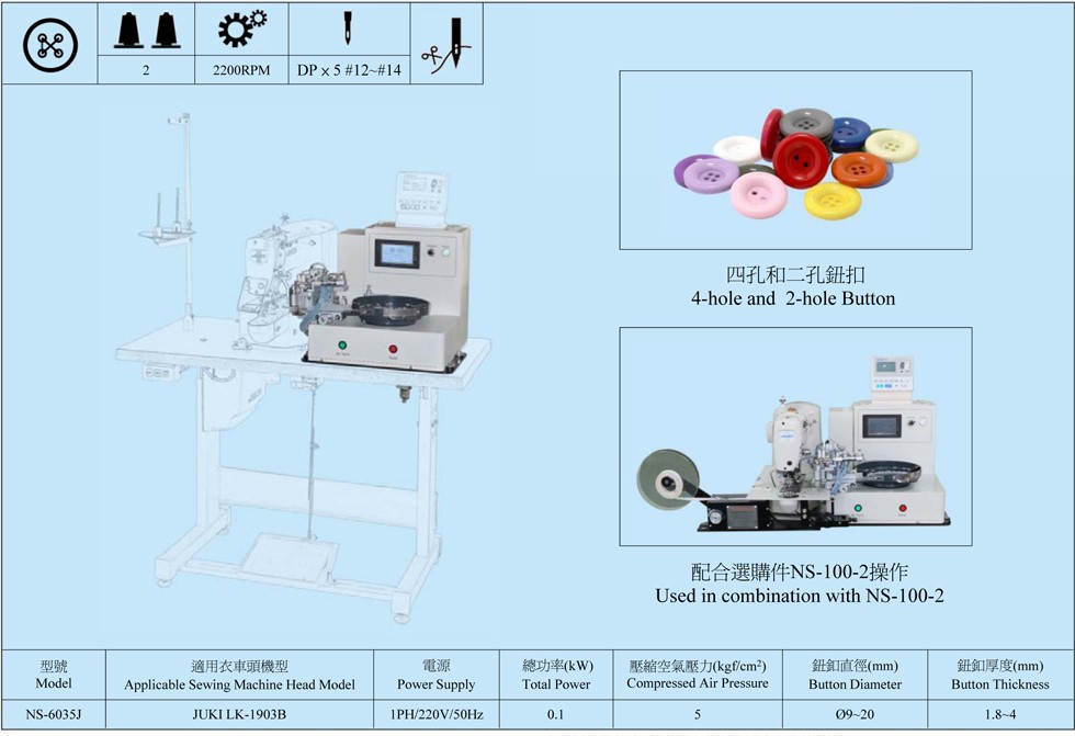 可配合JUKI平縫釘鈕扣機(jī)使用,實(shí)現(xiàn)自動送鈕釘鈕功能